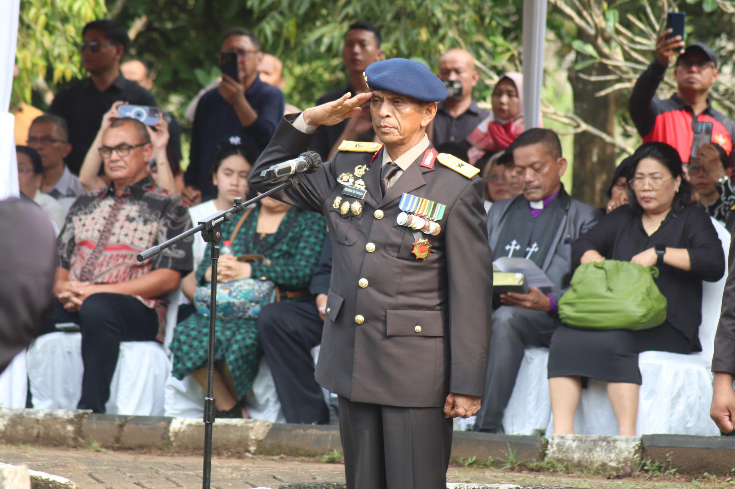 Upacara pemakaman dimulai tepat pukul 13.00 WIB. Pasukan berseragam lengkap berdiri rapi, sementara iringan keluarga dan rekan-rekan almarhum memasuki area pemakaman. Upacara dipimpin oleh Teknisi KBRN Utama Tk I Brigjen Pol. Deonijiu De Fatima selaku Inspektur upacara prosesi kebesaran Polri, sebuah penghormatan yang diberikan kepada anggota yang mengabdikan hidupnya bagi negara.