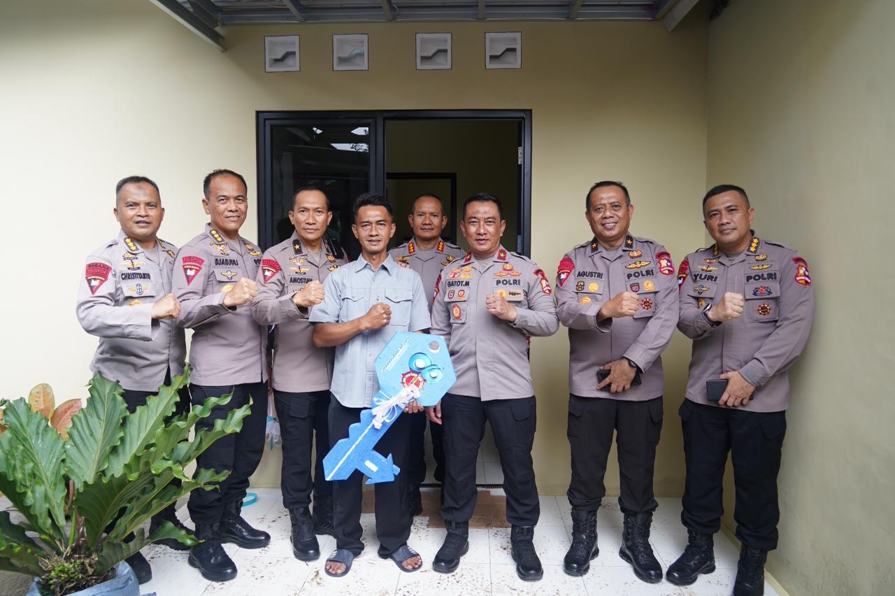 Dalam rangka memperingati Hari Ulang Tahun ke-80 Korps Brimob Polri, Danpas Pelopor Korbrimob Polri Brigjen Pol. Gaot Mangkurat Putra P. J. meresmikan dan menyerahkan kunci rumah hasil program Bedah Rumah kepada Bapak Eko Taufik Prasetyo, putra dari almarhum Brigadir Riyanto, di Kelurahan Ciluar, Kecamatan Bogor Utara, Kota Bogor, Jawa Barat, pada Rabu (12/11/2025).