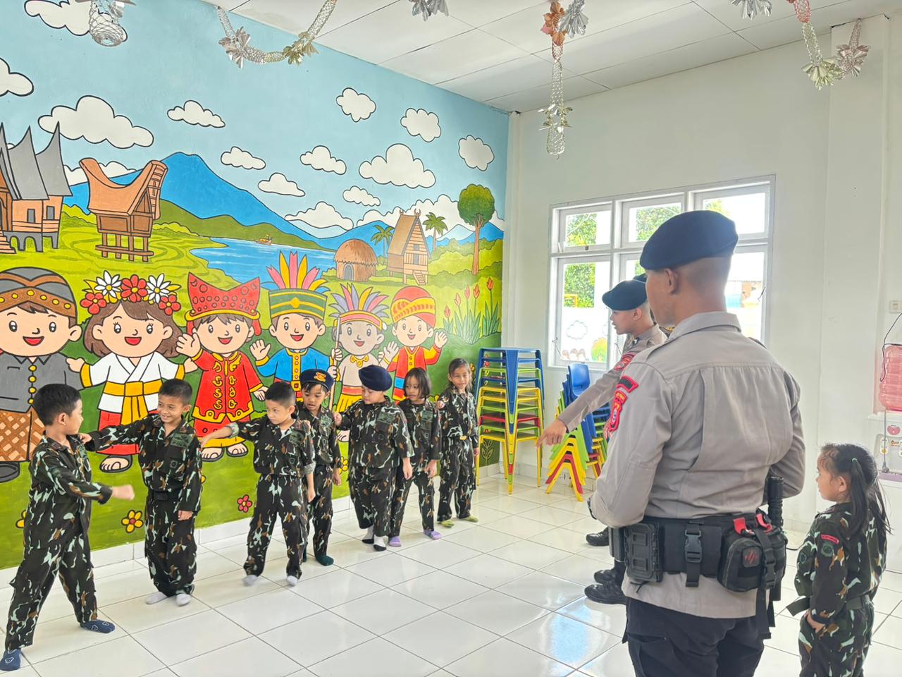 Palu – Dalam upaya menanamkan nilai kedisiplinan sejak usia dini, personel Satbrimob Polda Sulawesi Tengah memberikan pelatihan Peraturan Baris Berbaris (PBB) kepada anak-anak TK Kemala Bhayangkari 14 Brimob.