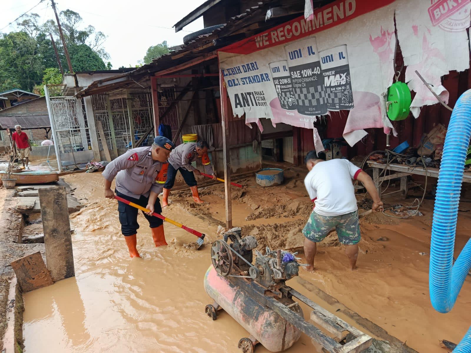 Rumah-rumah yang dipenuhi lumpur dan sisa material longsor dibersihkan menggunakan angkong, sekop, dan perlengkapan lapangan lainnya. Kerja keras para personel akhirnya memulihkan kondisi rumah sehingga sudah bisa ditempati kembali.