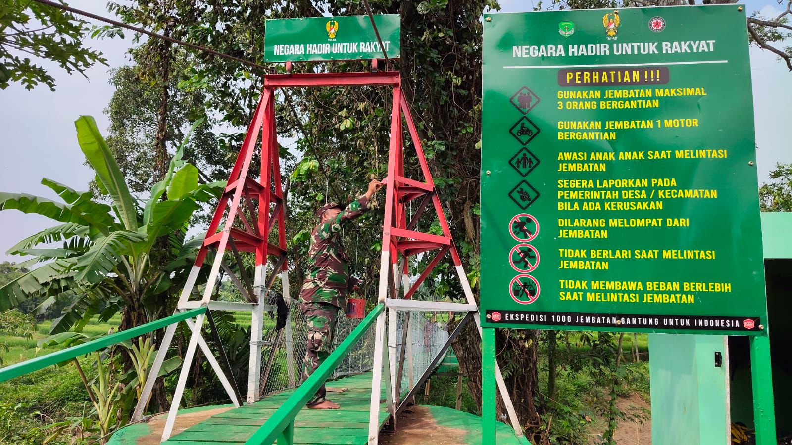 Kegiatan video conference (vicon) launching pembangunan 218 titik Jembatan Gantung Garuda di seluruh Indonesia ini juga dilaksanakan di wilayah teritorial Kodam Jaya/Jayakarta Korem 051/Wkt, Kodim 0509/Kab. Bekasi, tepatnya di Jembatan Gantung Garuda Manggala Sungai Cikarang Dua, Kampung Bojong RT 02/RW 04, Desa Kertarahayu, Kecamatan Setu.