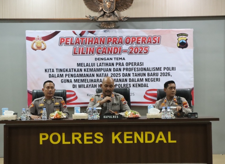 KENDAL — Polres Kendal menggelar Pelatihan Pra Operasi Lilin Candi 2025 sebagai langkah awal pemantapan kesiapan personel dalam rangka pengamanan Natal 2025 dan Tahun Baru 2026. Kegiatan tersebut berlangsung di Aula Tribrata Polres Kendal, Kamis (18/12/2025) pagi.