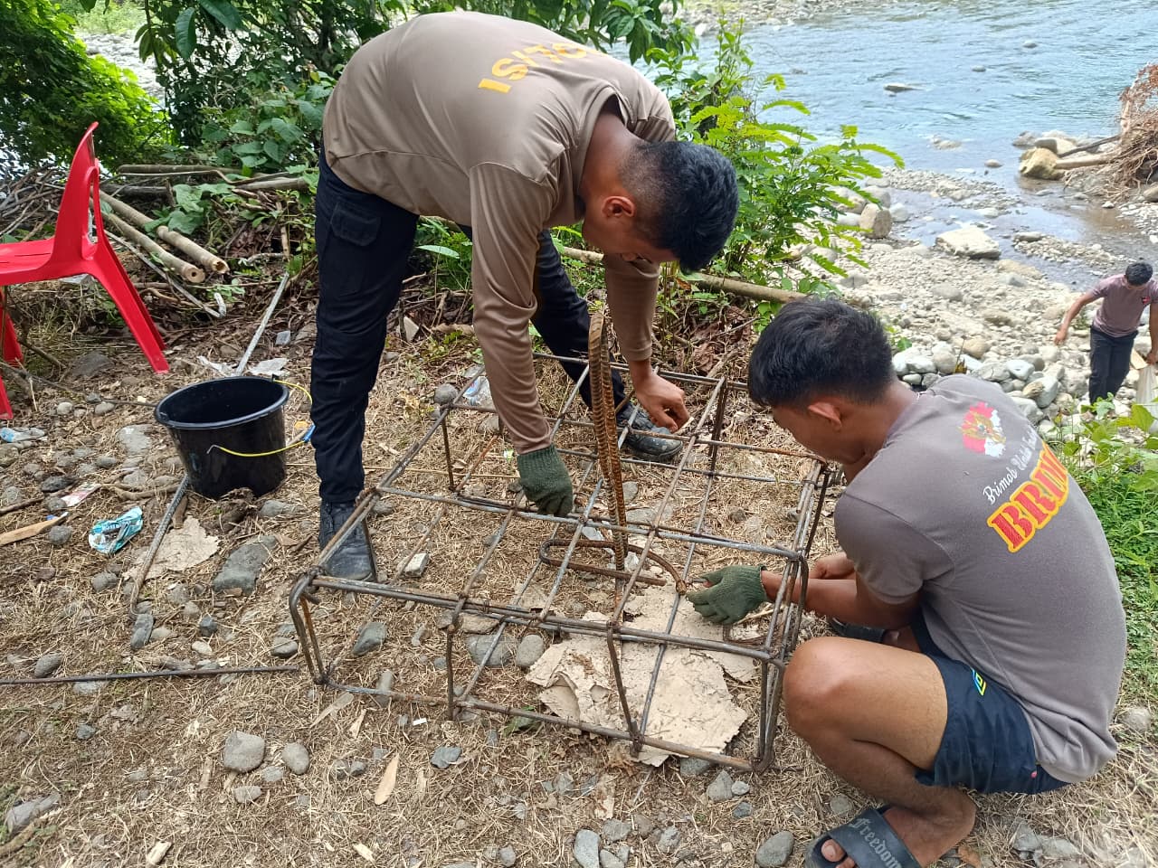 Selain fokus pada pembangunan fisik, personel Brimob juga tetap menjaga keamanan area kerja serta membantu masyarakat sekitar yang membutuhkan bantuan tambahan.