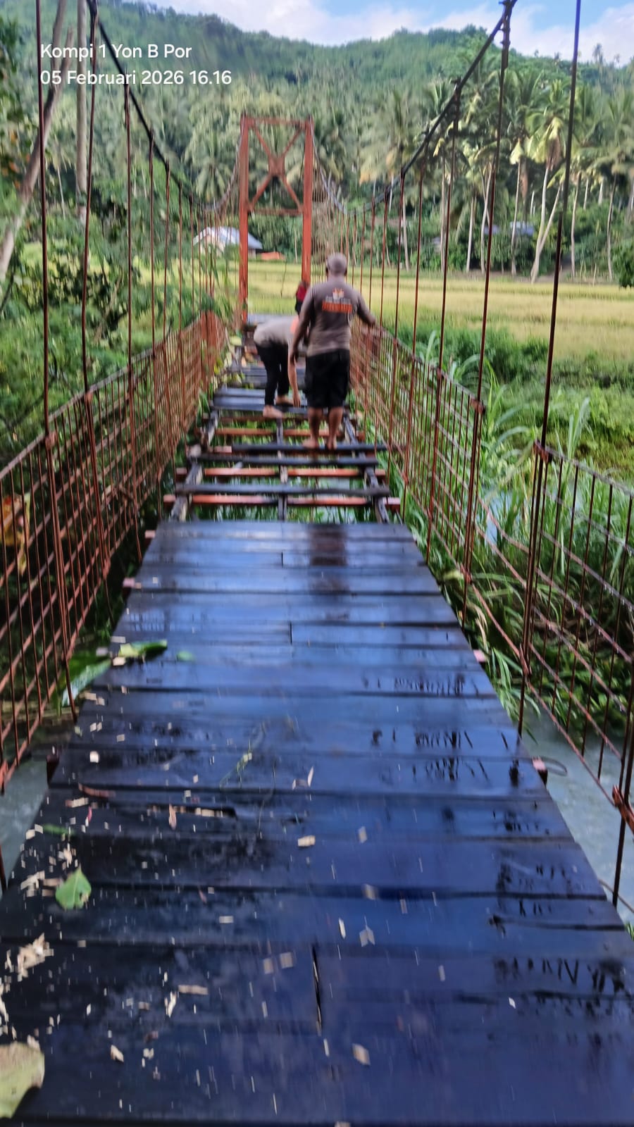 Setelah melalui proses perbaikan lanjutan, kondisi jembatan dinyatakan semakin kuat dan aman untuk dilalui kendaraan roda dua maupun pejalan kaki, sehingga akses mobilitas warga kembali normal.