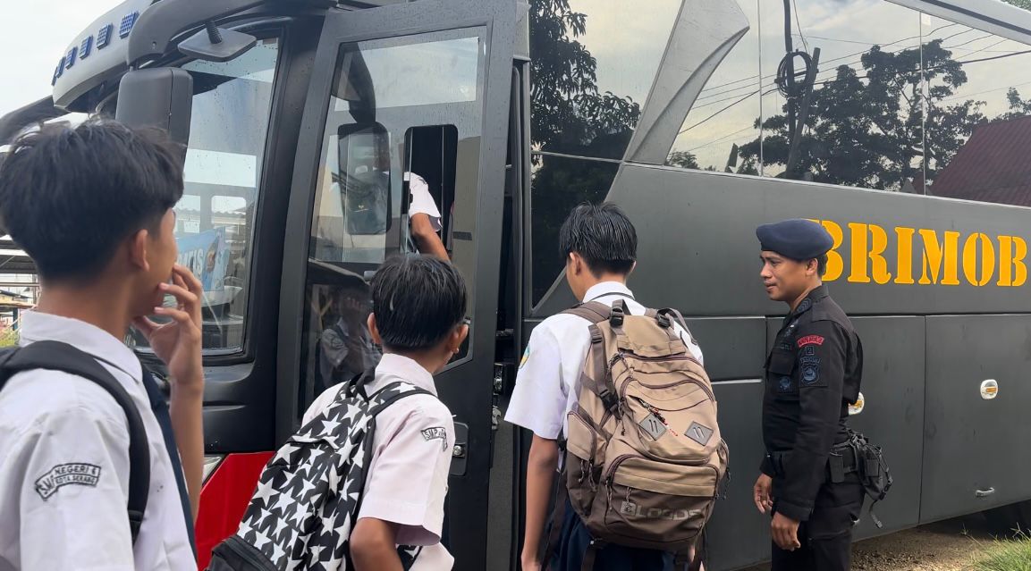 Serang – Satuan Brimob Polda Banten menghadirkan inovasi layanan sosial berupa “Bus Sekolah Gratis” bagi pelajar.