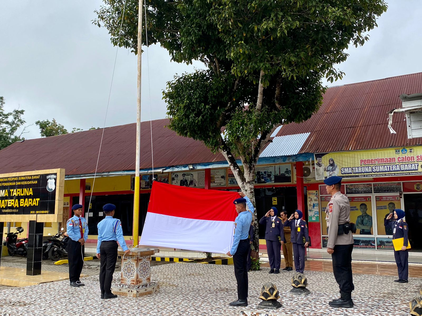 Dharmasraya — Upacara bendera di SMA Taruna Sumatera Barat pada Senin pagi berlangsung khidmat dan penuh makna. Upacara dipimpin langsung oleh AKP Jhon Hendri Budiman, yang hadir sebagai pembina upacara untuk memberikan pembinaan karakter kepada seluruh siswa, khususnya mengenai pentingnya disiplin dalam kehidupan sehari-hari. (17-11-25)