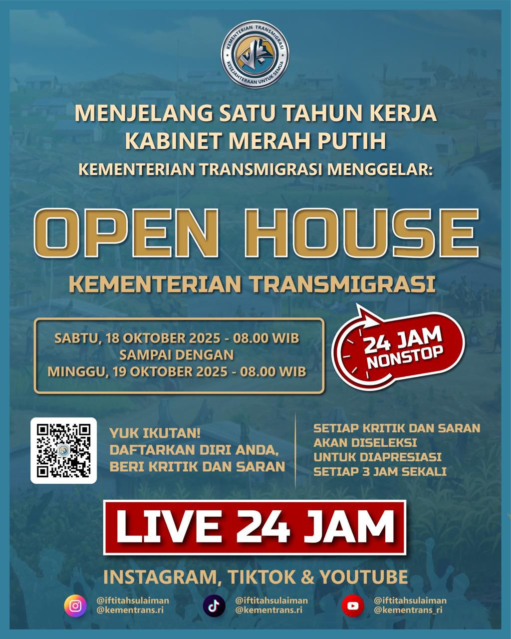 OPEN HOUSE TRANSFORMASI TRANSMIGRASI 24 JAM NONSTOP