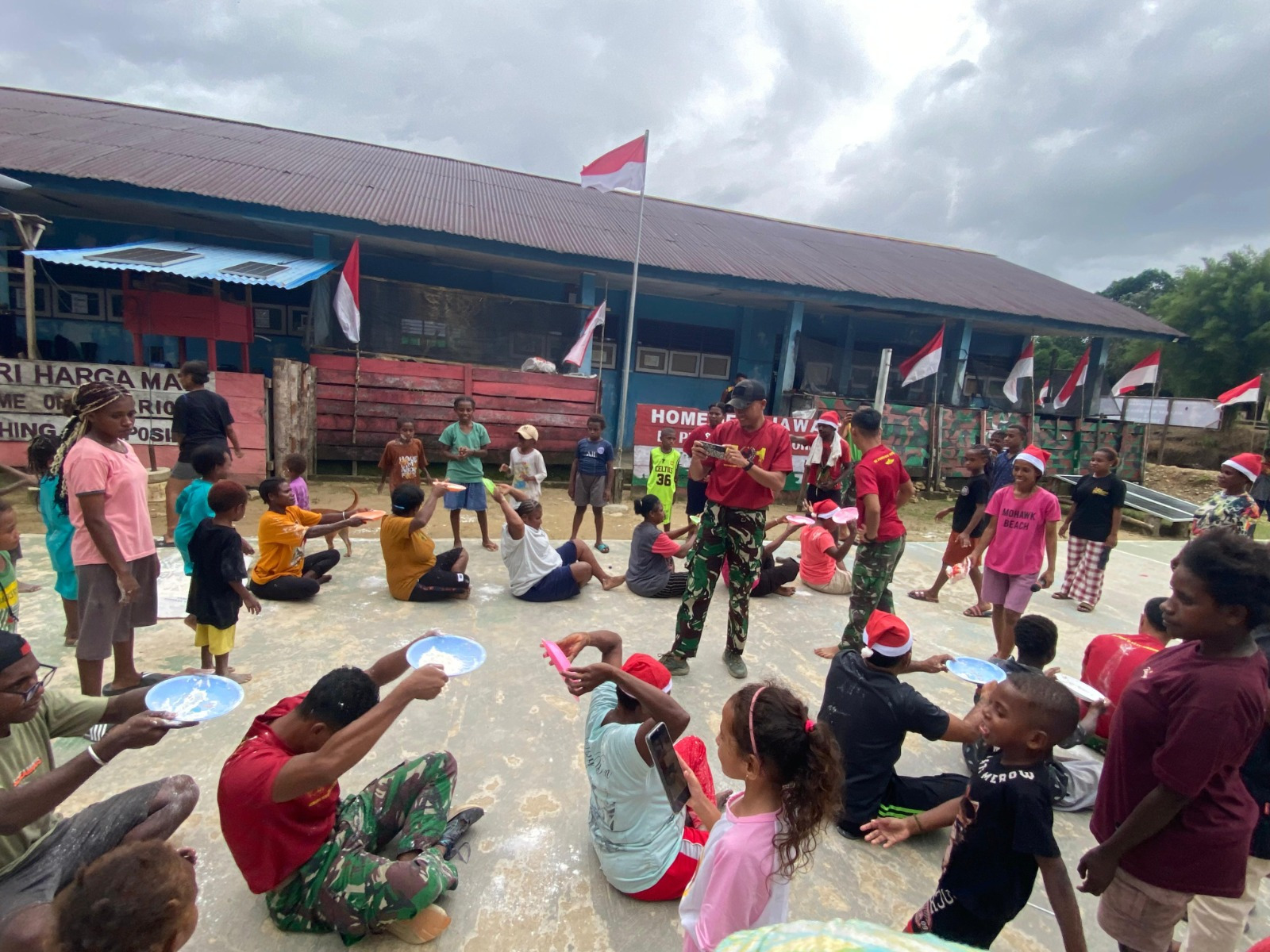 Fankario – Dalam rangka memperingati HUT Stasi Santa Maria Bunda Allah, Satgas Yonif 501/BY menggelar berbagai perlombaan seru di Titik Kuat Fankario. Acara ini melibatkan warga dari Kp. Fankahrio, Kp. Tashimara, Kp. Warba, hingga Kp. Samarakator. Senin (30/12/ 2024).