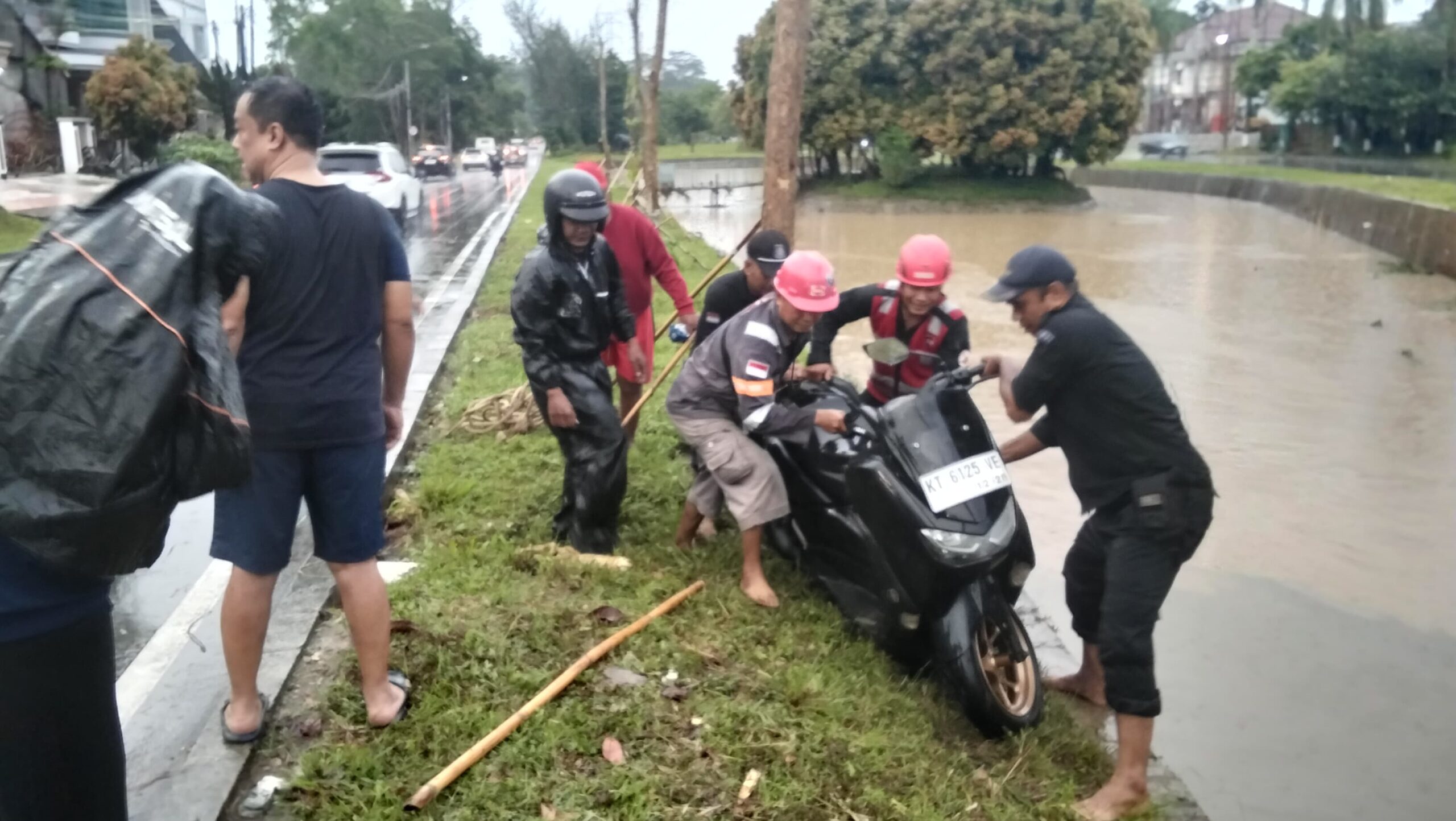 BALIKPAPAN – Tim Respon Bencana Batalyon A Pelopor Satbrimob Polda Kaltim bergerak cepat mengevakuasi sebuah sepeda motor yang tercebur ke sungai di Komplek Perumahan Balikpapan Baru, Kota Balikpapan, Kaltim, Jumat (6/2/2026) pagi.