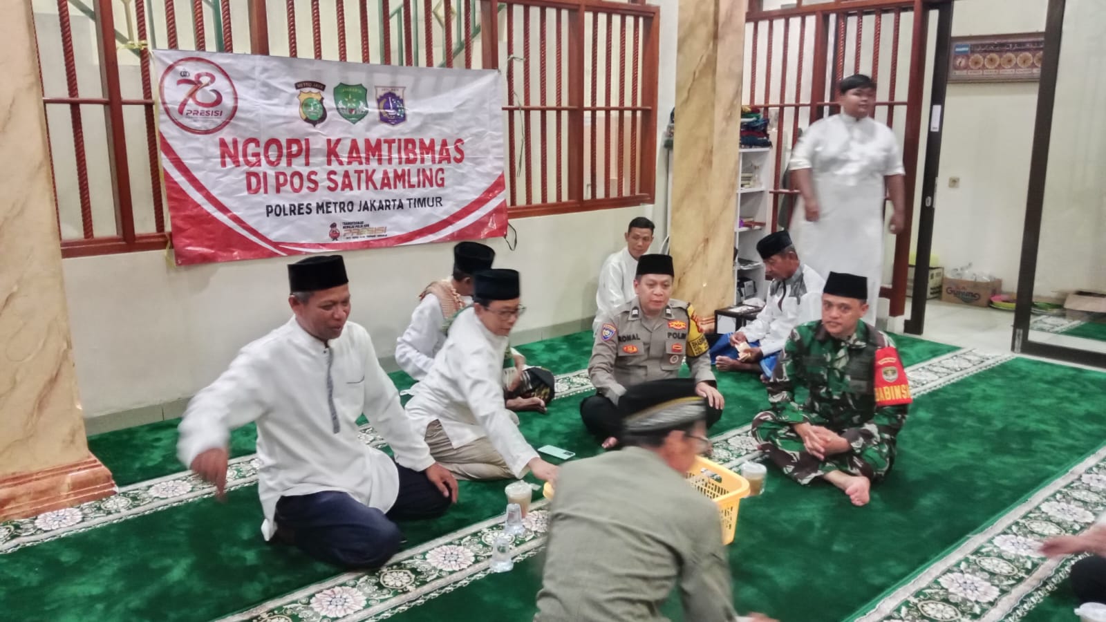 Jakarta — Guna menciptakan lingkungan yang aman, damai, dan kondusif, Bhabinkamtibmas Cijantung, mewakili Kapolsek Pasar Rebo AKP I Wayan Wijaya, S.H., menggelar kegiatan *Ngopi Kamtibmas* bersama tokoh masyarakat dan tokoh agama di Teras Jamiatul Huda, RT 002/RW 06 Cijantung Kecamatan Pasar Rebo Jakarta Timur.