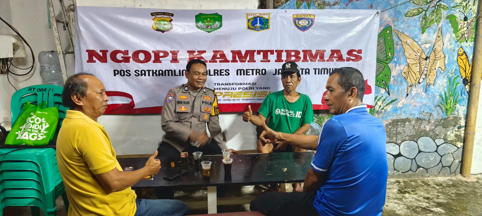 Bhabinkamtibmas Kelurahan Kayu Manis, Aiptu Iwan Fajar, menggelar kegiatan Ngopi Kamtibmas bersama LMK, Ketua RT 08/07, serta warga sekitar. Kegiatan ini menjadi ruang dialog santai antara warga dan kepolisian mengenai situasi keamanan lingkungan.