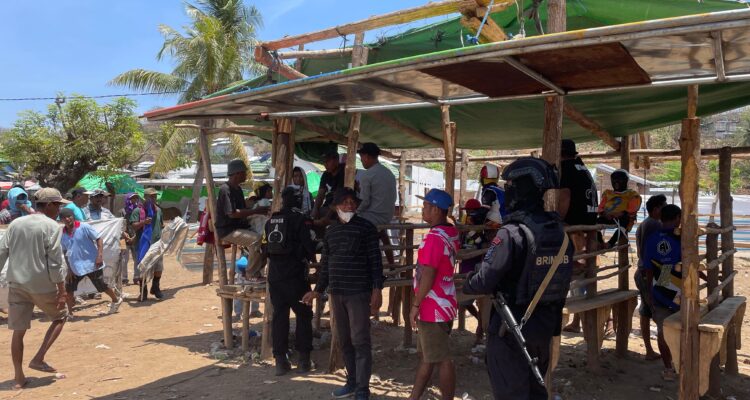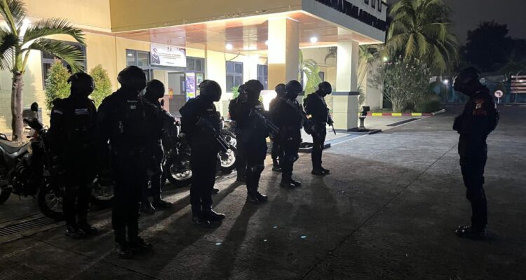Sejumlah personel Kompi 4 Batalyon A Pelopor Satuan Brimob Polda Maluku diterjunkan