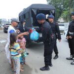Serang – Personel Satbrimob Polda Banten melaksanakan patroli Skala Besar di Wilkum