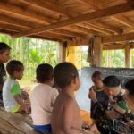 Boven Digoel – Satgas Pamtas Yonif 126/Kala Cakti melaksanakan program pengajaran dasar baca, tulis,