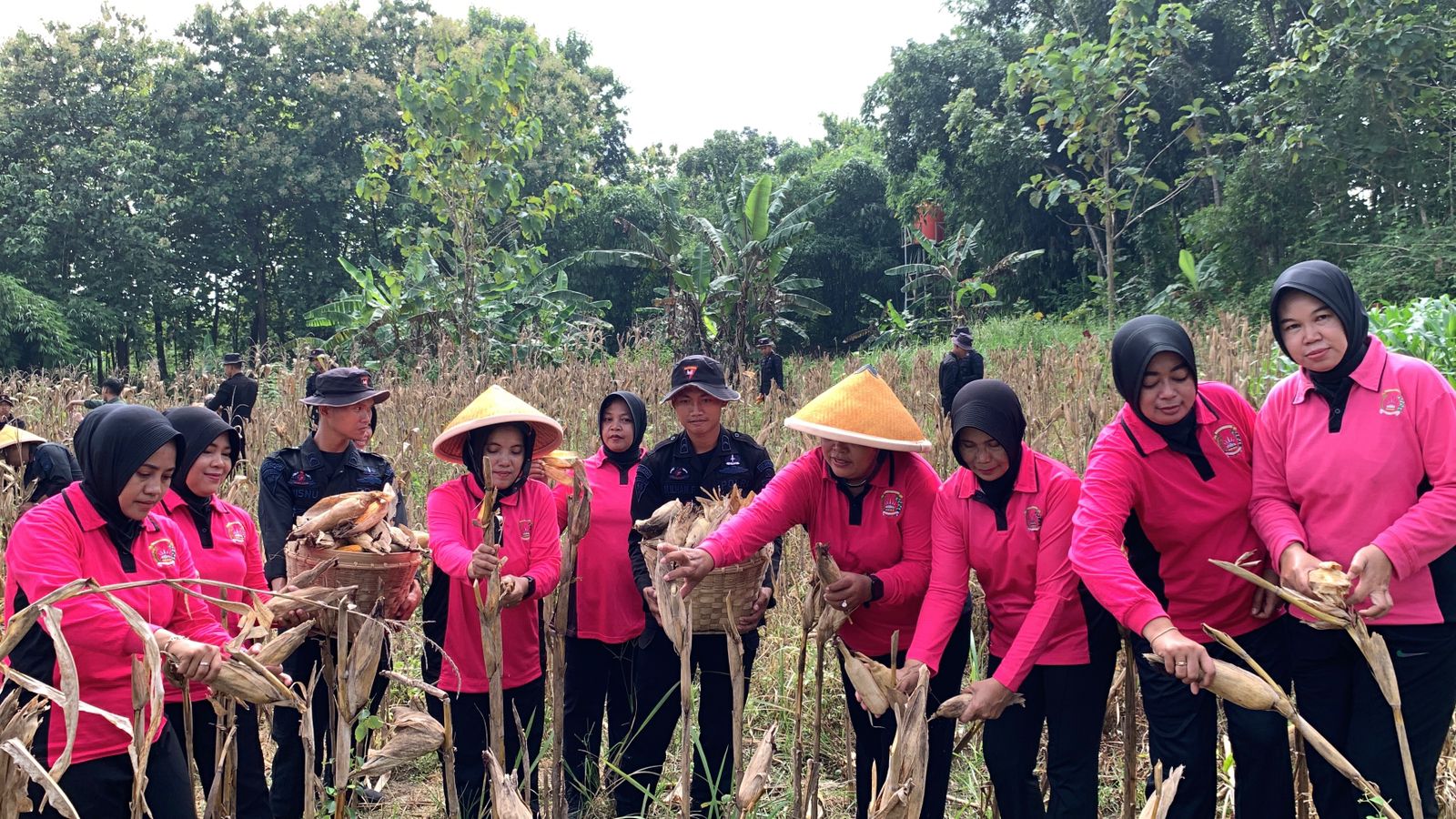 Panen Raya Jagung yang dipimpin DANYON C POR SATBRIMOB POLDA JATENG KOMPOL LANGGENG SUGITO Bersama anggota Batalyon C Pelopor Melaksanakan giat panen raya di lahan jagung Brimob berada di Gemolong kab.Sragen.