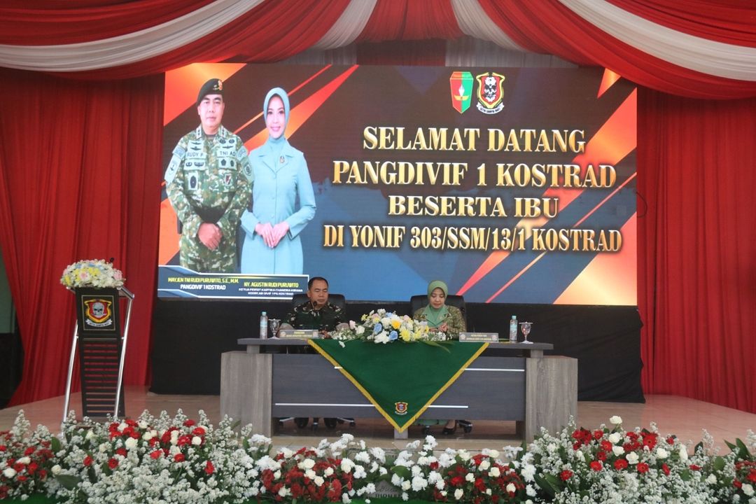 Pangdivif 1 Kostrad Mayjen TNI Rudi Puruwito, S.E., M.M., berada di tengah-tengah keluarga besar Yonif 303/SSM untuk memberikan motivasi dan menebarkan pesan-pesan semangat untuk Prajurit dan keluarganya.