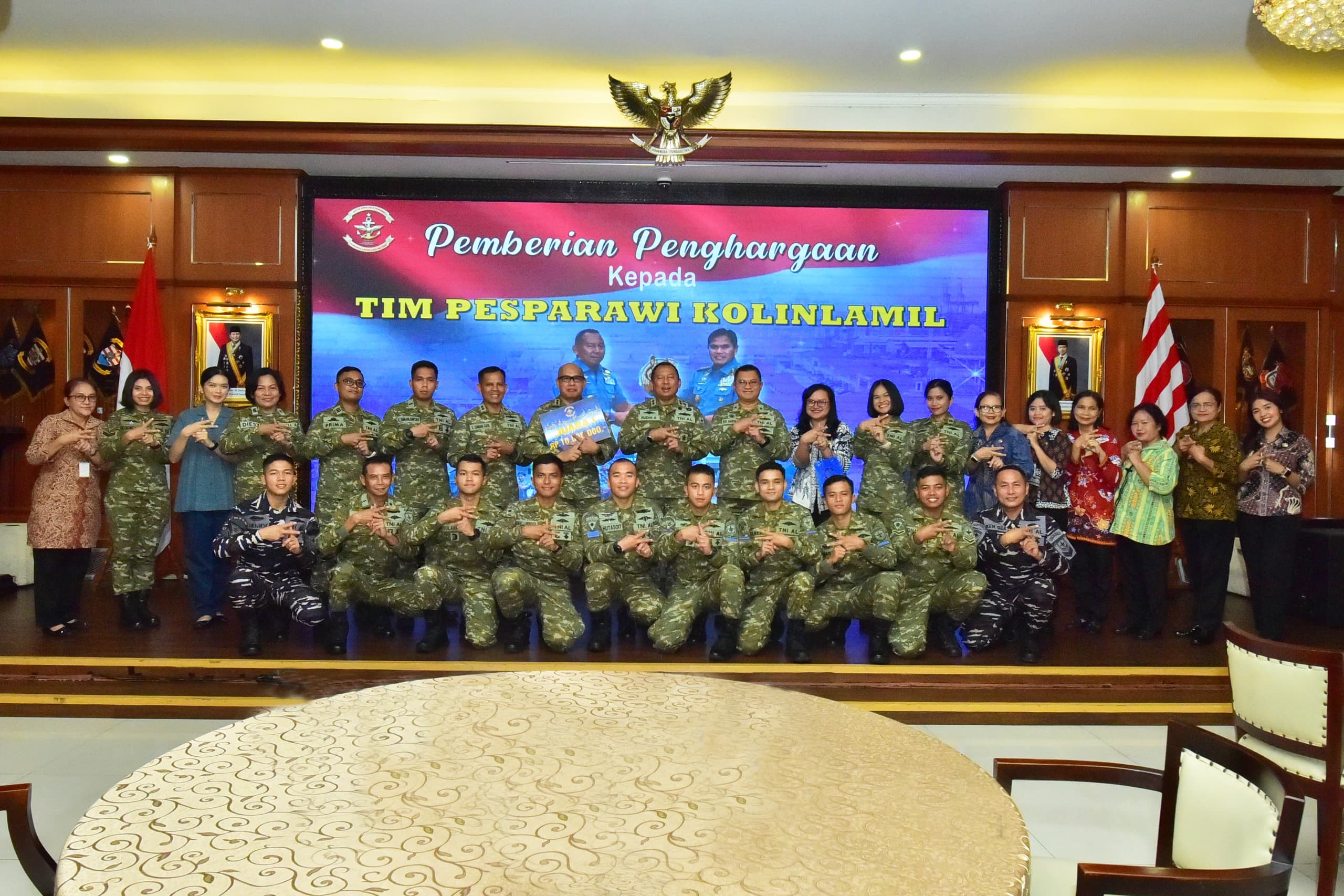 Berita Kolinlamil TNI AL, 23 Januari 2026 —— Panglima Komando Lintas Laut Militer (Pangkolinlamil) Laksamana Muda TNI Rudhi Aviantara, IH., S.E., M.Si., M.Tr.(Han)., CHRMP., memberikan penghargaan dan apresiasi kepada Tim Pesparawi (Pesta Paduan Suara Gerejawi) Kolinlamil atas keberhasilan meraih Juara I dalam Lomba Pesparawi TNI Angkatan Laut Wilayah Jakarta Tahun 2025. Kegiatan tersebut berlangsung di Gedung Laut Nusantara, Mako Kolinlamil, Tanjung Priok, Jakarta Utara, Jumat (23/01), dan dihadiri para pejabat Kolinlamil serta seluruh anggota Tim Pesparawi.