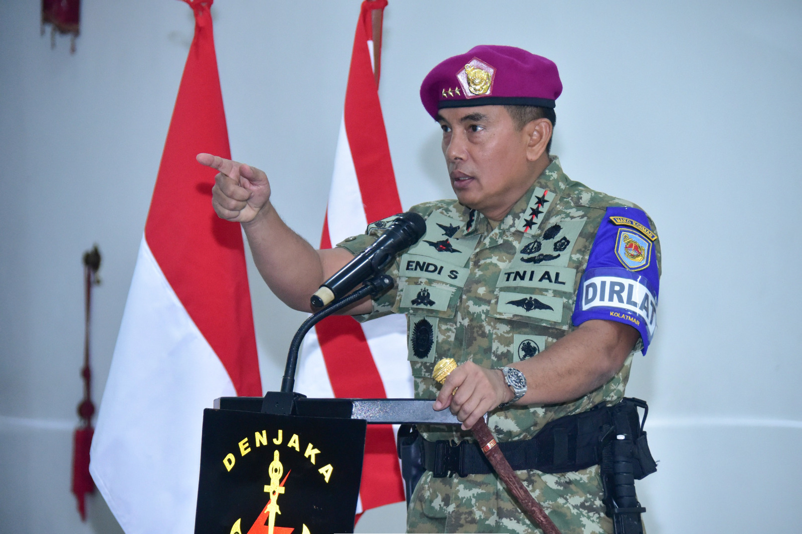 Dispen Kormar, TNI Angkatan Laut (Jakarta). Panglima Korps Marinir (Pangkormar) Letnan Jenderal TNI (Mar) Dr. Endi Supardi, S.E., M.M., M.Tr.Opsla., CHRMP., CRMP., memimpin briefing pembukaan Latihan Operasi Pengamanan Objek Vital Nasional (Obvitnas) Strategis dan Latihan Anti Teror Denjaka Tahun 2026 di Gedung Bapra Denjaka, Kesatrian Arthur Solangs, Cilandak, Jakarta Selatan, Jumat (23/01/2026).