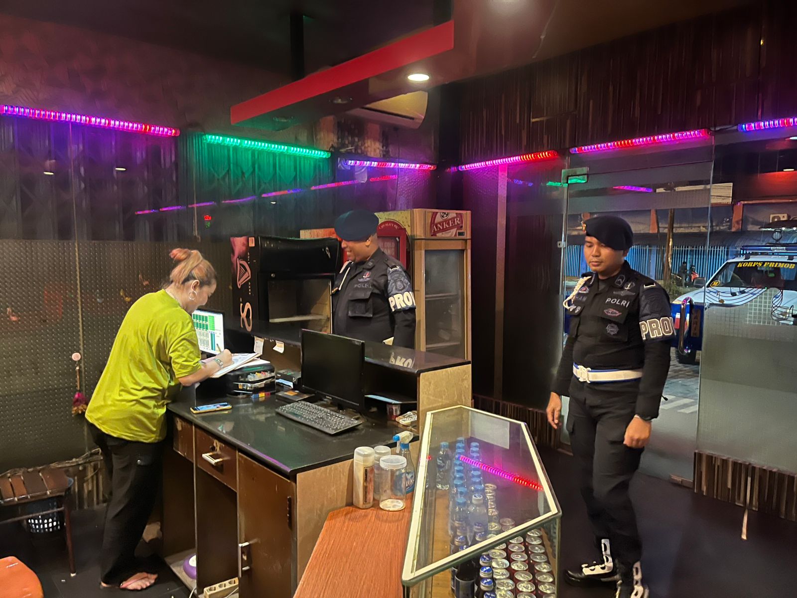 Pantroli intensif personel Provos Satbrimob Polda Kalbar diberbagai tempat hiburan malam di Provinsi Kalbar, upaya Polri menjaga disiplin dan marwah institusi. Kamis (23/04/26).