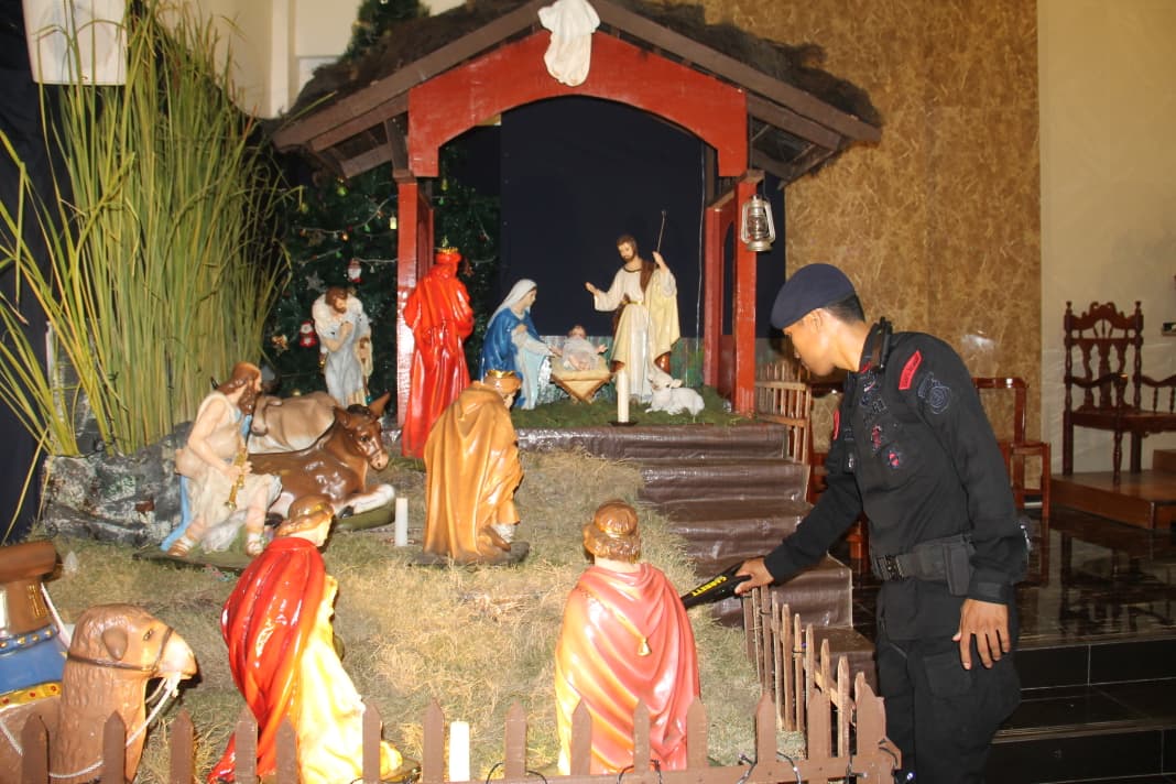 “Sterilisasi ini bertujuan untuk memastikan tidak ada benda mencurigakan atau potensi bahaya lainnya yang dapat mengganggu jalannya ibadah. Kami ingin memberikan rasa aman sepenuhnya kepada saudara-saudara kita yang melaksanakan Misa Malam Natal,” ujar Kasubsatgas Jibom di sela kegiatan.