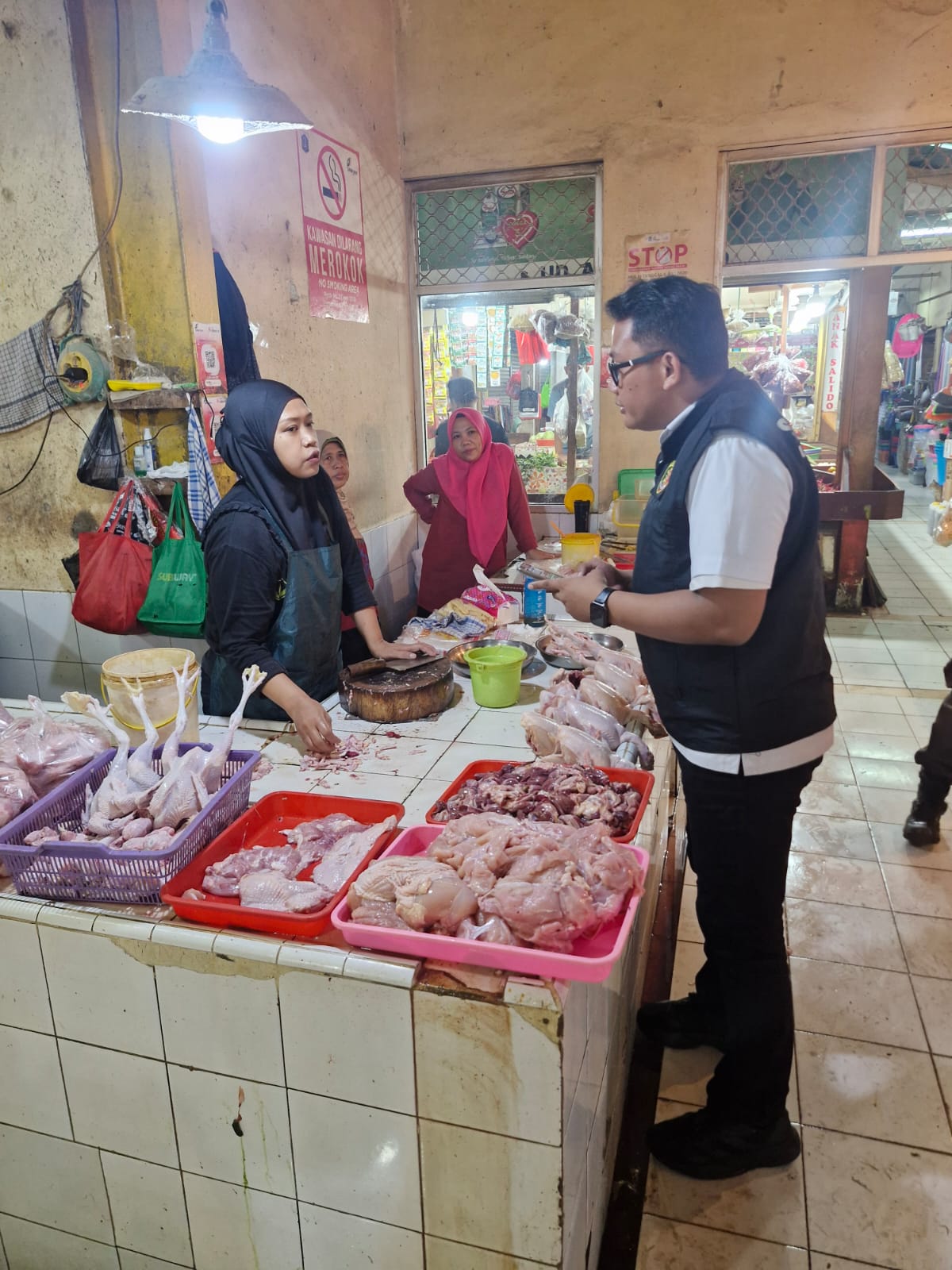 Di lokasi, tim bertemu dengan staf Pasar Pondok Bambu, Bapak Sri Handoko, yang menyampaikan bahwa kondisi stok bahan pangan saat ini masih dalam kategori cukup dan aman untuk memenuhi kebutuhan masyarakat.