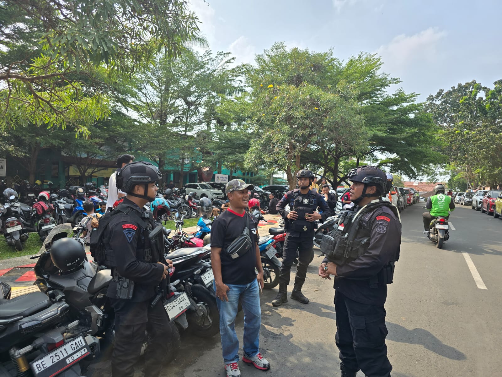 BrimobLampung_Personel Detasemen Gegana Satbrimob Polda Lampung dalam rangka menjaga terpeliharanya Kamtibmas yang aman dan kondusif di wilayah Kota Bandar Lampung terus melakukan upaya Patroli dialogis guna memantau secara langsung dan memberikan himbauan-himbauan Kamtibmas. Sabtu, 18/10/25