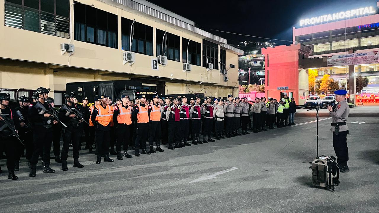 Memasuki hari ke-7 pelaksanaan operasi, personel gabungan melaksanakan patroli rutin yang diawali dengan apel konsolidasi di Lapangan Apel Mapolda Papua, Kota Jayapura, Jumat malam (27/12).