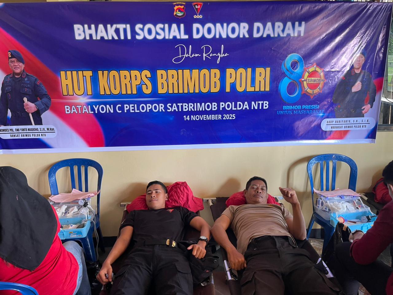 Dalam rangka memperingati Hari Ulang Tahun Korps Brimob Polri yang ke-80, Personel Batalyon C Pelopor dan Subden 4 Gegana Satbrimob Polda NTB bersama Ibu-ibu Bhayangkari melaksanakan kegiatan donor darah sebagai wujud kepedulian terhadap sesama.