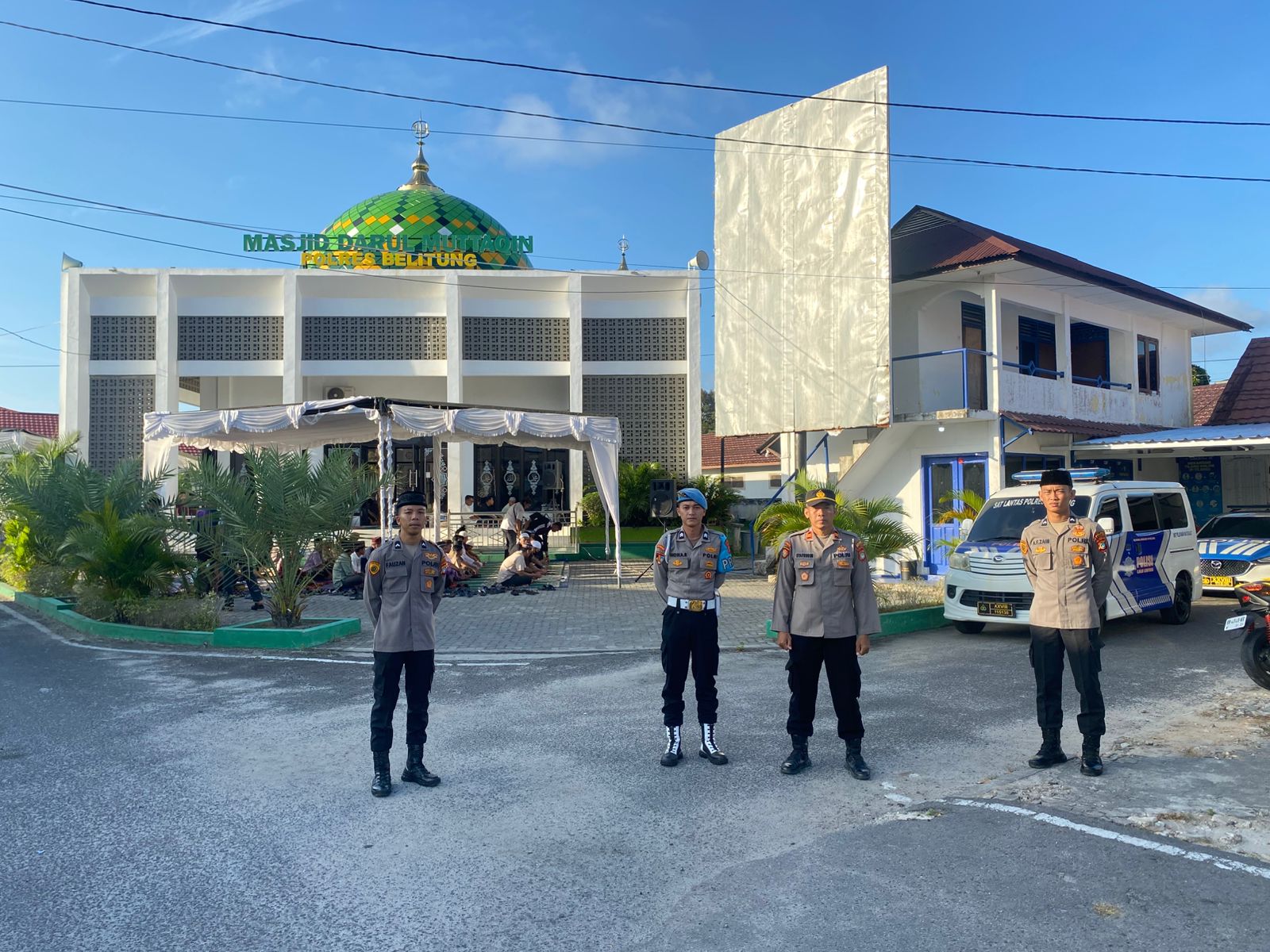 Pengamanan juga dilaksanakan di Masjid Darul Muttaqien Polres Belitung dengan jumlah jamaah sekitar 200 orang, serta di Masjid Asy Syafa’ah Tanjungpandan yang diikuti sekitar 300 jamaah. Di wilayah Kecamatan Selat Nasik, Badau, dan Membalong, personel Polsek turut disiagakan untuk memastikan kelancaran ibadah masyarakat.