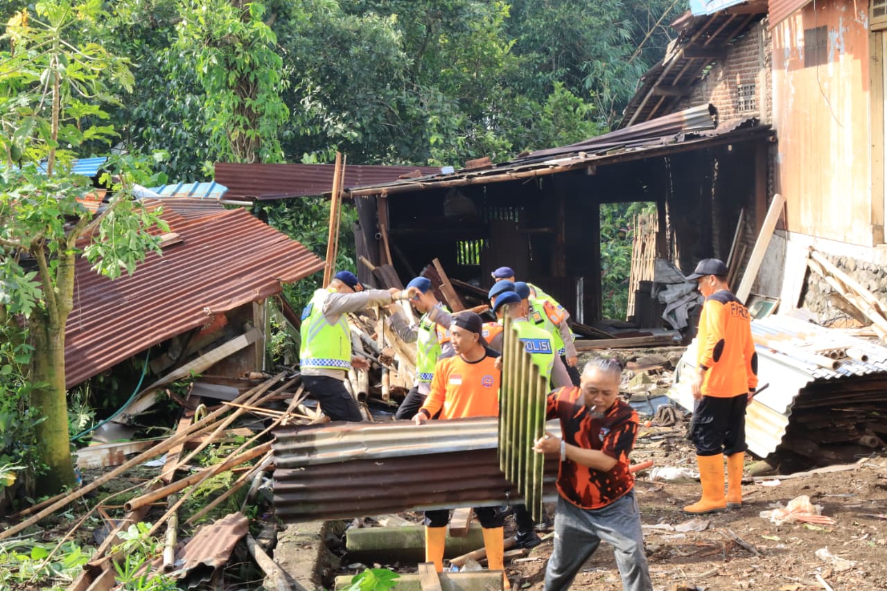Pasca cuaca ekstrem angin puting beliung yang menerjang wilayah desa Kotayasa kab. Banyumas, Tim SAR Satbrimob Polda Jateng bergerak cepat melaksanakan aksi tanggap darurat. Dipimpin oleh Aiptu Doni Irawan, petugas fokus melakukan pembersihan material dan puing-puing guna memastikan akses jalan kembali normal serta membantu warga terdampak.