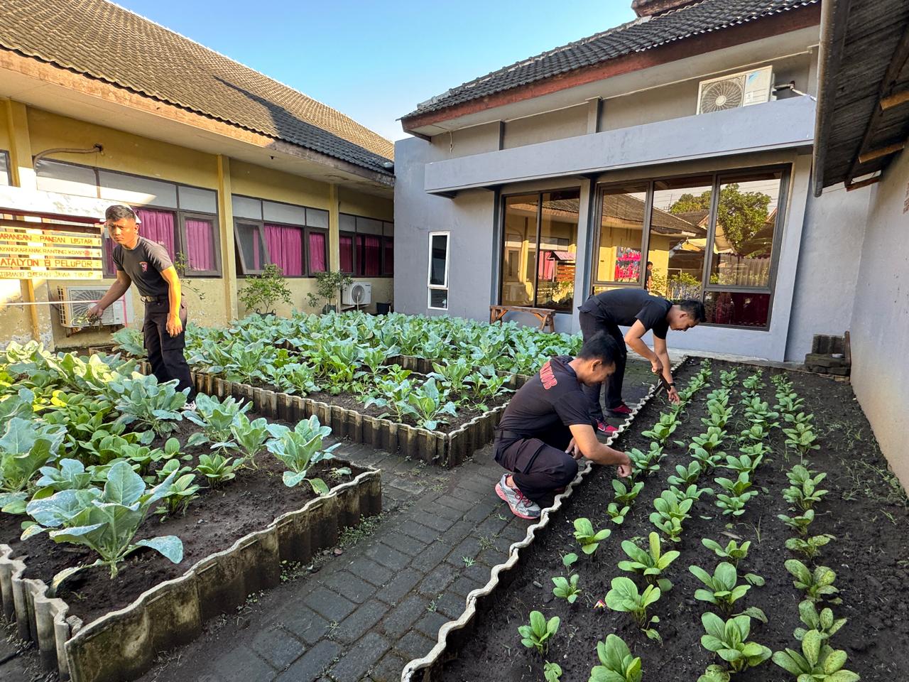 Dalam kegiatan ini, anggota Brimob melakukan penggemburan tanah, pemupukan tanaman cabai dan terong serta penyiraman rutin. Mereka juga Mencabuti rumput liar sekitaran Tanaman yang ditanam
