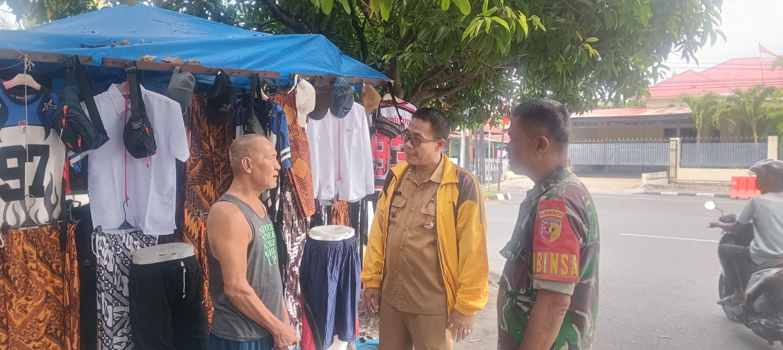 KORAMIL 01 PBU | Babinsa Koramil 01/PBU Kodim 0312/Padang Sertu Marjohan mendampingi Lurah Rimbo Kaluang dalam kegiatan peneguran terhadap para pedagang kaki lima (PKL) yang berjualan di sepanjang trotoar dan pinggiran jalan wilayah Kelurahan Rimbo Kaluang, Kota Padang.