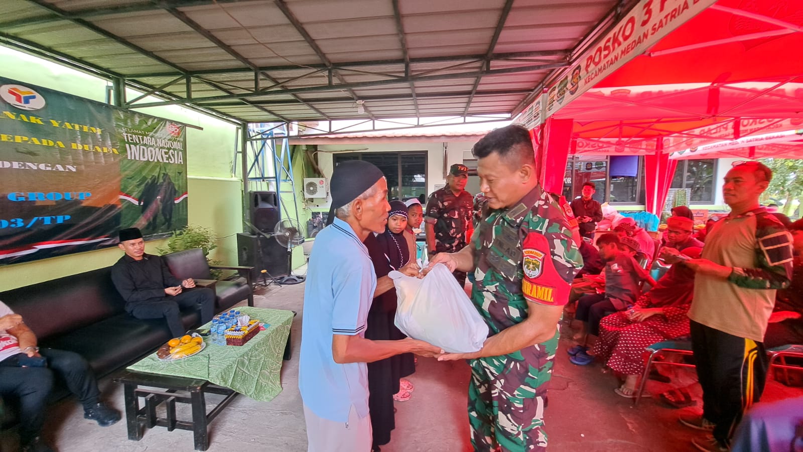 Kegiatan dilanjutkan dengan penyerahan santunan dan paket sembako secara simbolis kepada anak-anak yatim dan warga dhuafa oleh Danramil, Lurah, dan perwakilan PT Tri Abadi Group. Suasana haru dan bahagia terasa ketika para penerima santunan mengucapkan terima kasih atas kepedulian TNI dan para donatur.