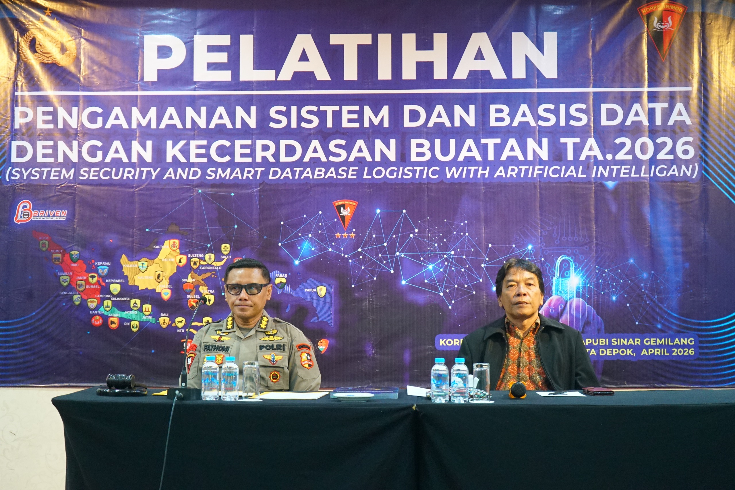 Korbrimob Polri menggelar Pelatihan Pengamanan Sistem dan Basis Data dengan Kecerdasan Buatan Tahun Anggaran 2026 yang berlangsung di Ruang Roedjito, Hotel Bumi Wiyata, Jalan Margonda Raya No. 281, Depok, Senin (27/4/2026).