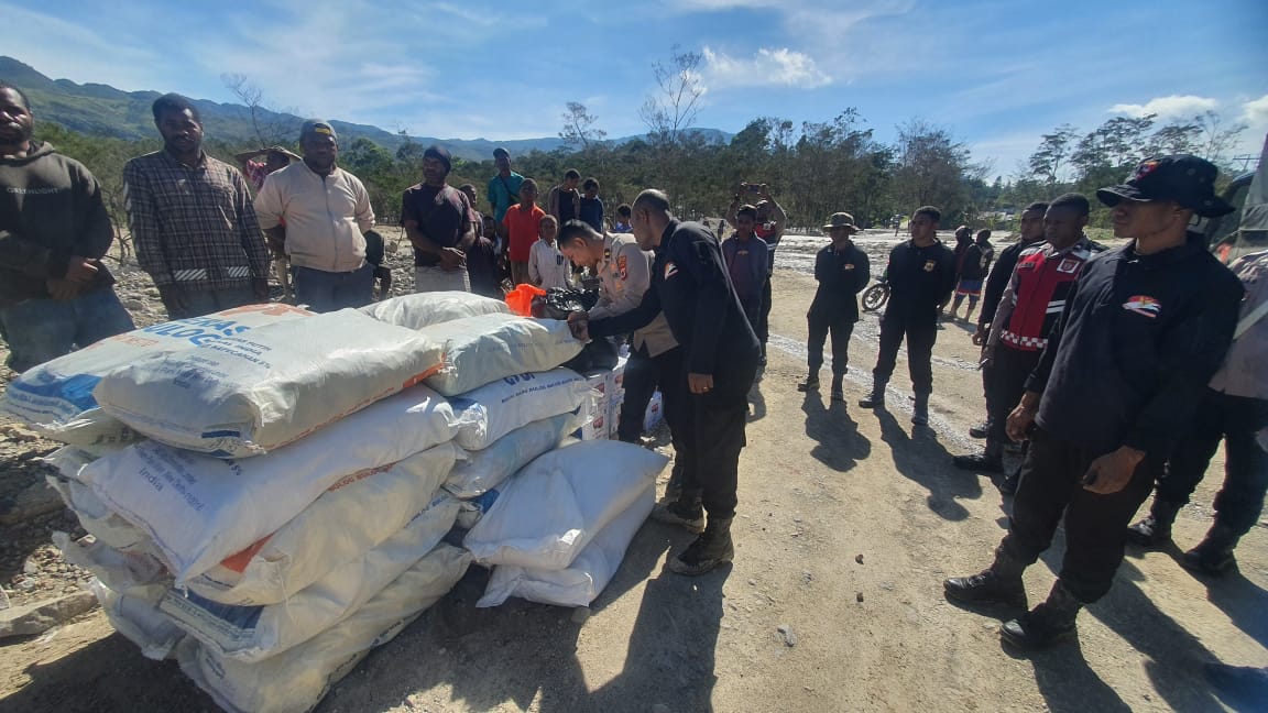 Bencana longsor yang terjadi beberapa hari sebelumnya mengakibatkan sejumlah rumah warga mengalami kerusakan dan membuat sebagian masyarakat harus mengungsi sementara. Melihat kondisi tersebut, personel Brimob dan Polres Jayawijaya segera bergerak menuju lokasi untuk memberikan bantuan kemanusiaan.