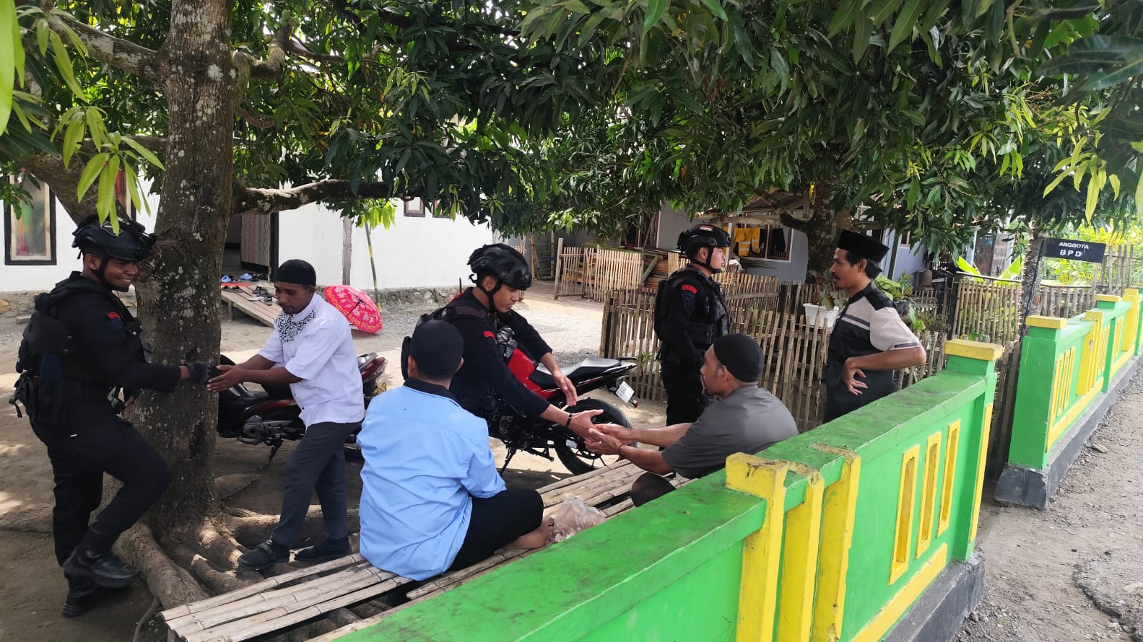 Personel Brimob Polda Maluku Utara melaksanakan kegiatan Patroli Sambang di Desa Soasangaji dan Desa Wailukum kab. Haltim.
