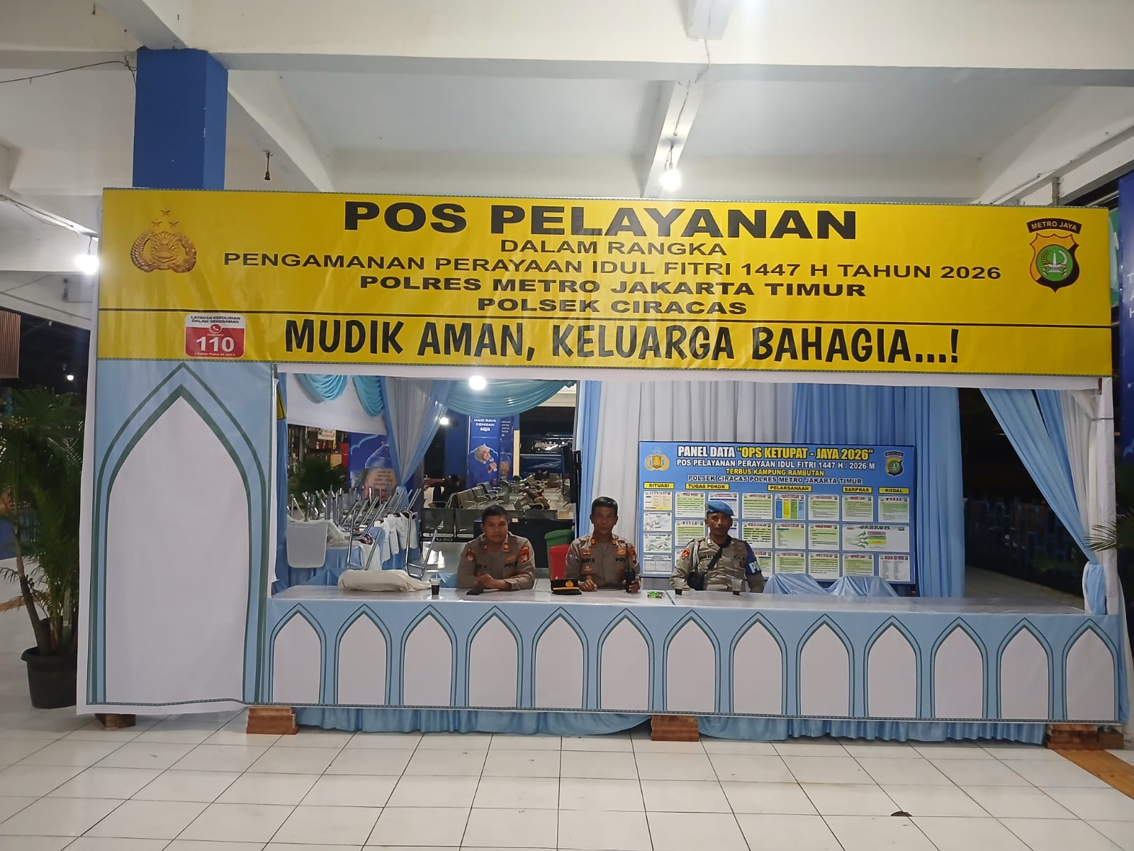 Pengamanan dilaksanakan di ruang tunggu Terminal Bus Antar Kota, Jalan Supriyadi, Rambutan, Ciracas, Jakarta Timur. Kegiatan ini merupakan bagian dari rangkaian pengamanan arus mudik dan aktivitas masyarakat dalam Operasi Ketupat Jaya 2026.