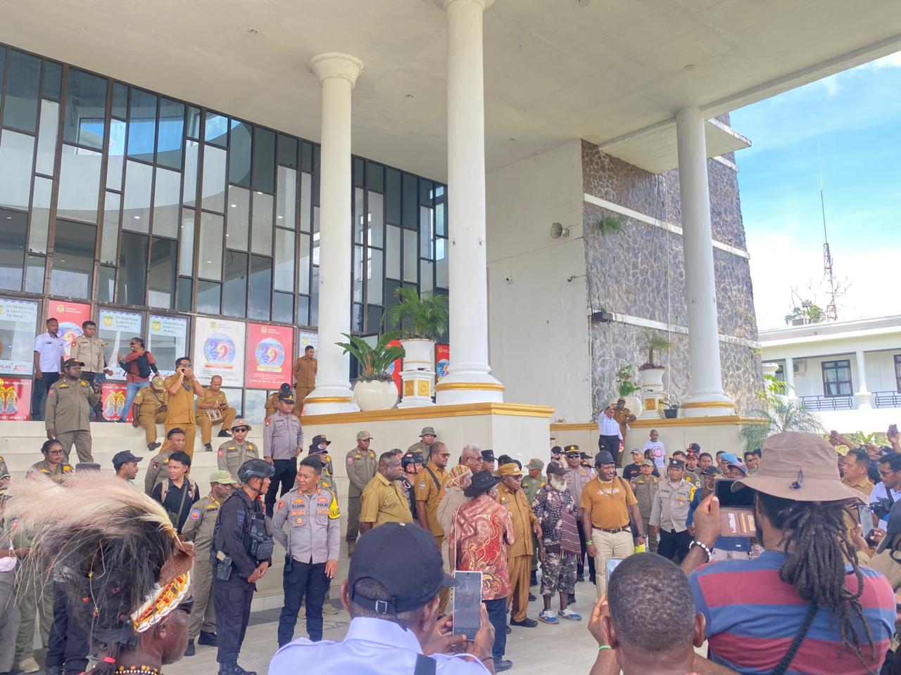 Bupati Mimika Johannes Rettob, S.Sos., M.M. turut hadir menemui langsung para pendemo untuk memberikan klarifikasi dan penjelasan terkait tuntutan yang disampaikan. Melalui dialog terbuka tersebut, massa menerima penjelasan pemerintah daerah sehingga situasi tetap kondusif tanpa terjadi gangguan kamtibmas.