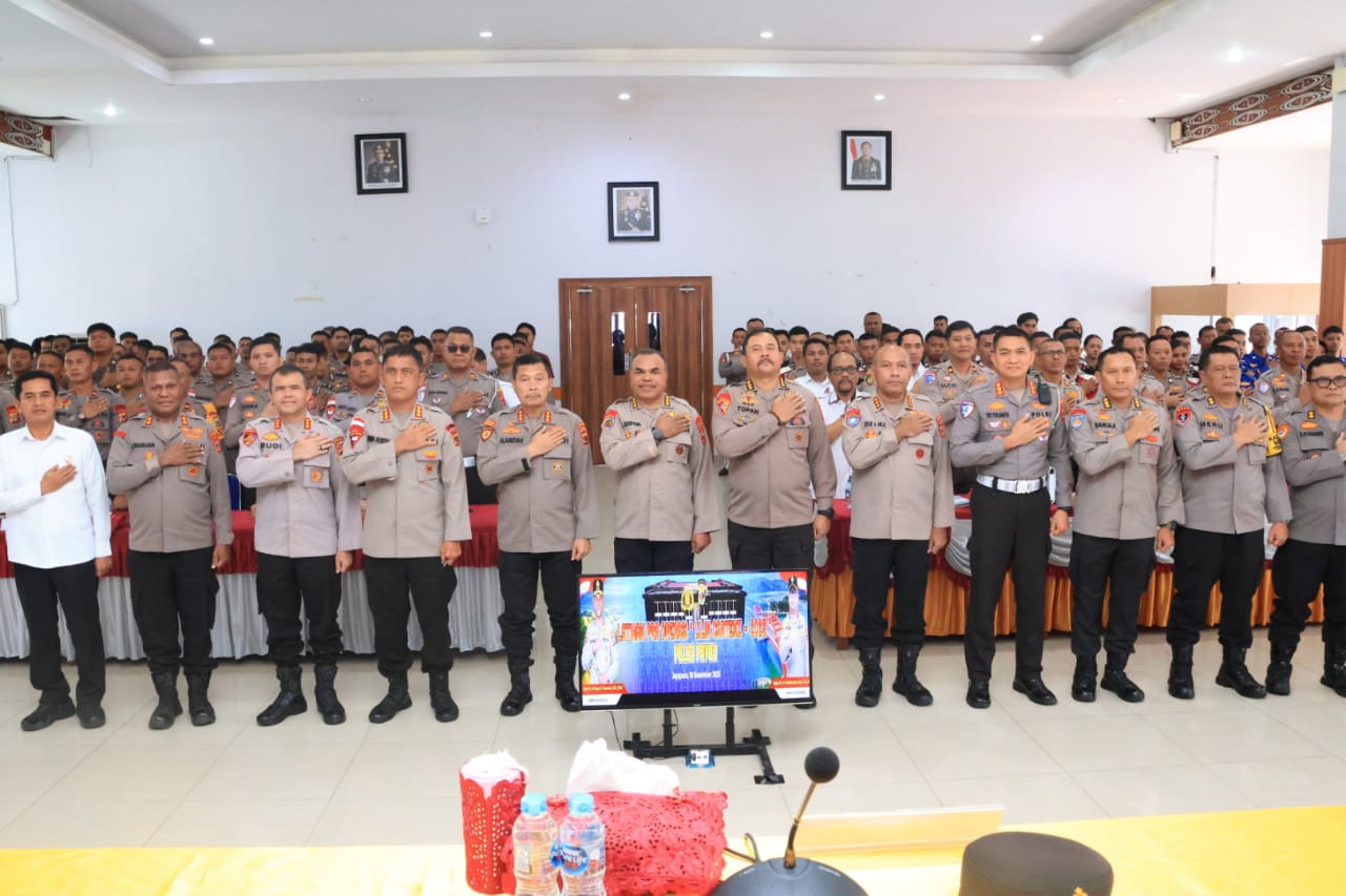 Jayapura – Kepolisian Daerah Papua menggelar Latihan Pra Operasi (Latpraops) Operasi Lilin Cartenz 2025 sebagai bentuk kesiapan pengamanan perayaan Natal 2025 dan Tahun Baru 2026. Kegiatan tersebut dilaksanakan di Aula Rastra Samara Polda Papua, Kamis (18/12/2025).