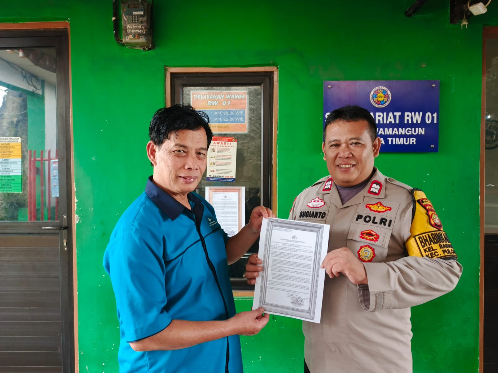 Jakarta – Dalam rangka menjaga ketertiban selama bulan suci Ramadan, jajaran Kepolisian dari Polsek Pulogadung melaksanakan pemasangan maklumat Kapolda Metro Jaya di Sekretariat RW 01 Kelurahan Rawamangun Kecamatan Pulogadung Jakarta Timur.