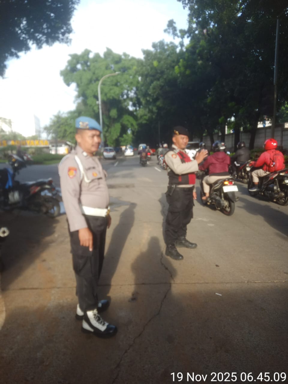 Pada Rabu (19/11), sejak pukul 06.00 jajaran Polres Metro Jakarta Timur bersama Polsek Cipayung melaksanakan monitoring sekaligus pengaturan lalu lintas yang dipimpin langsung oleh Kanit Lantas Cipayung, AKP Nana Sumarna.