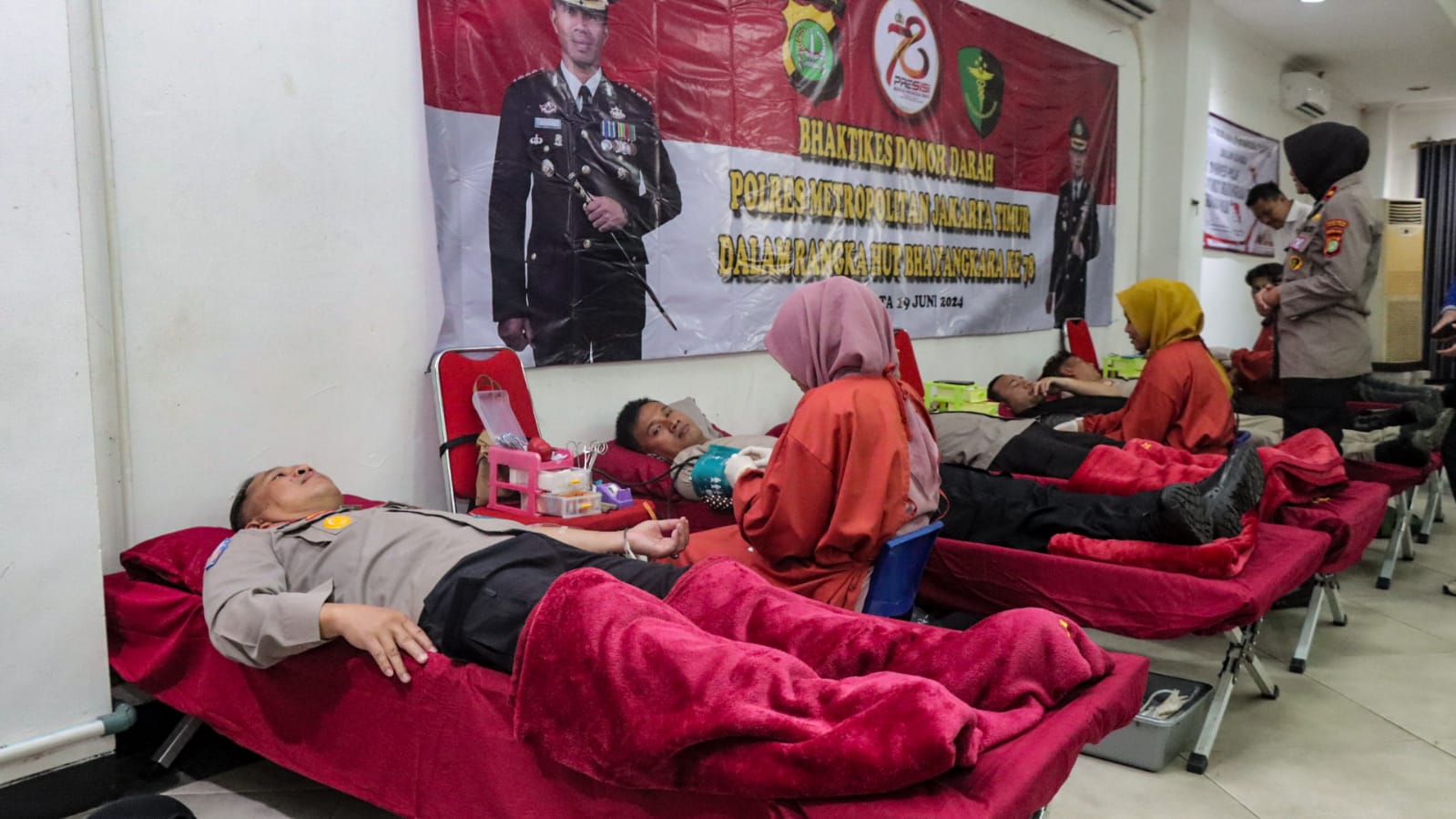 Jakarta – Bakti Kesehatan Donor Darah dalam Rangka Rangkaian HUT Bhayangkara Ke 78 Tahun 2024 digelar Polres Metro Jakarta Timur Rabu 19/06/2024, yang berlangsung di Aula Lt 6 Polres Metro Jakarta Timur.