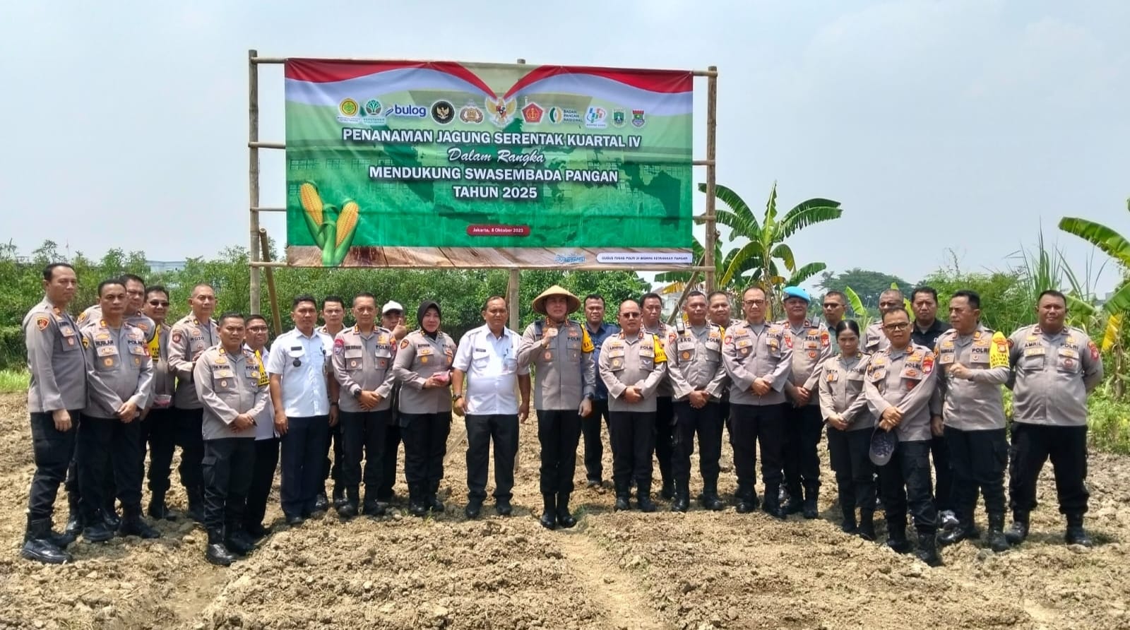 Jakarta Timur- Dalam rangka mendukung program Swasembada Pangan Tahun 2025, Polres Metro Jakarta Timur melaksanakan kegiatan Penanaman Jagung Serentak Kuartal IV Polri di lahan Pekarangan Pangan Bergizi Kampung Bali, Kelurahan Ujung Menteng, Cakung, Jakarta Timur, Rabu (8/10/2025).