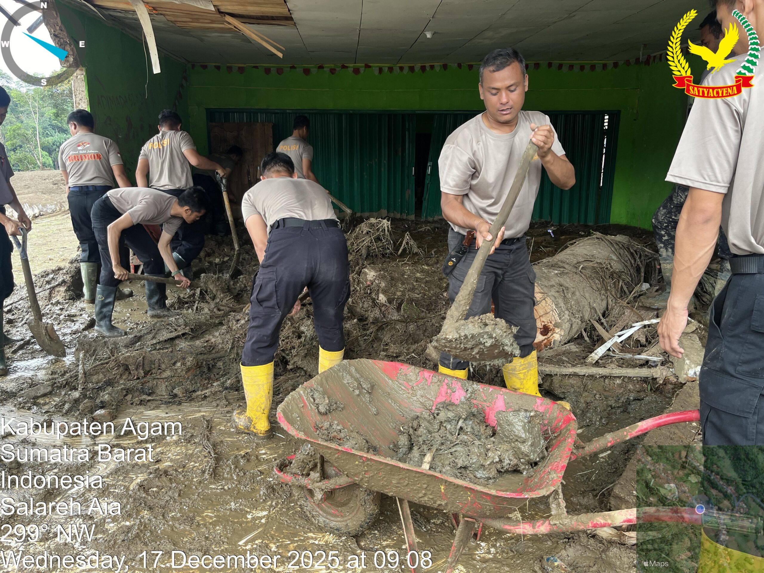 Wujud nyata kehadiran negara di tengah masyarakat kembali ditunjukkan oleh Korps Brimob Polri melalui Tim SAR Resimen II Pasukan Pelopor Korbrimob Polri yang melaksanakan operasi kemanusiaan berupa pencarian korban banjir serta pembersihan lingkungan warga di wilayah Kecamatan Palambayan, Kabupaten Agam, Sumatera Barat.