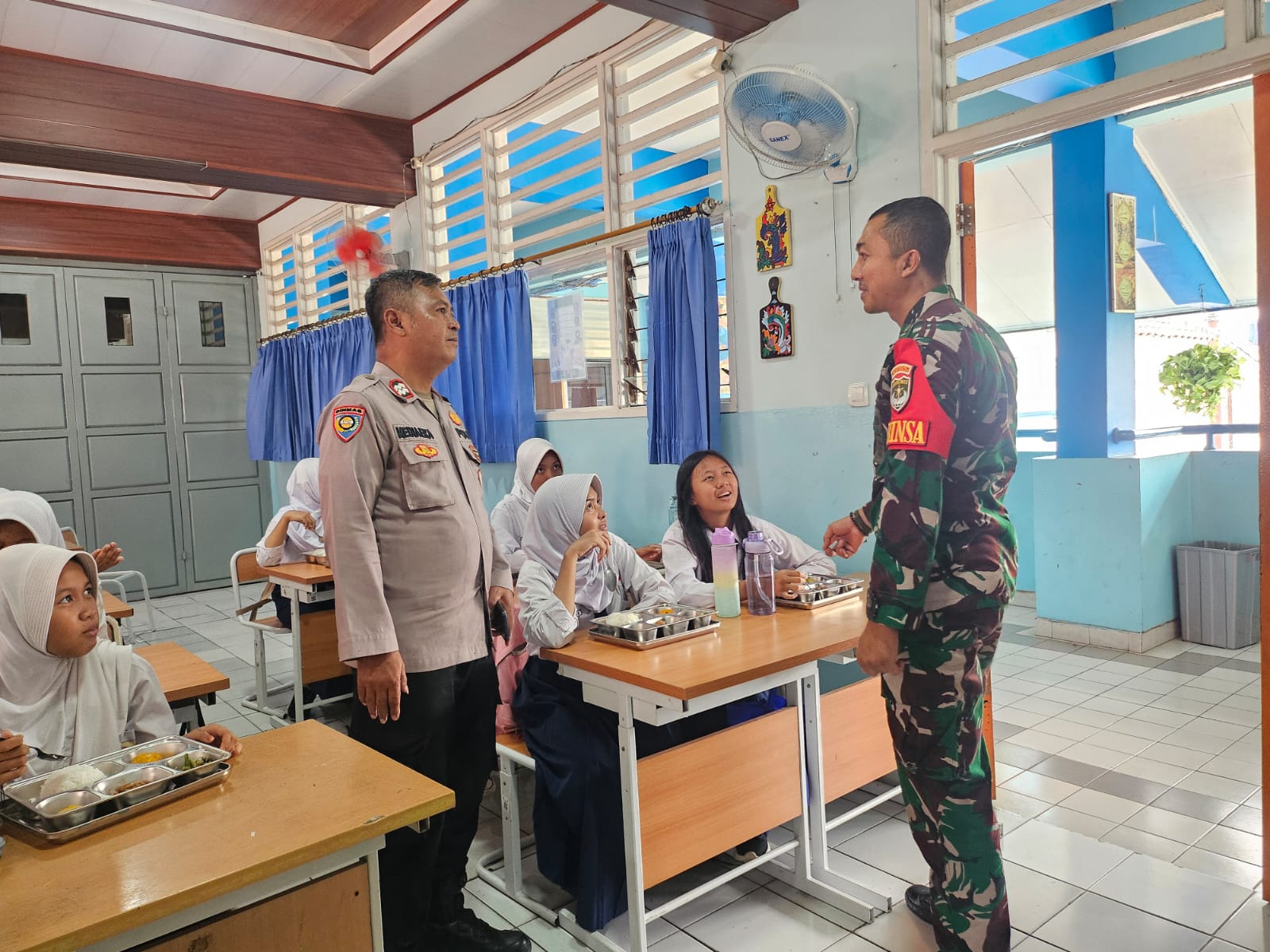 Jakarta Timur — Sebagai bentuk dukungan terhadap program pemerintah dalam peningkatan gizi anak-anak sekolah, Polsek Ciracas melaksanakan pengamanan kegiatan pembagian makanan bergizi gratis (MBG) di wilayah Kelurahan Cibubur, Kecamatan Ciracas, Jakarta Timur, pada Selasa (7/10/2025).