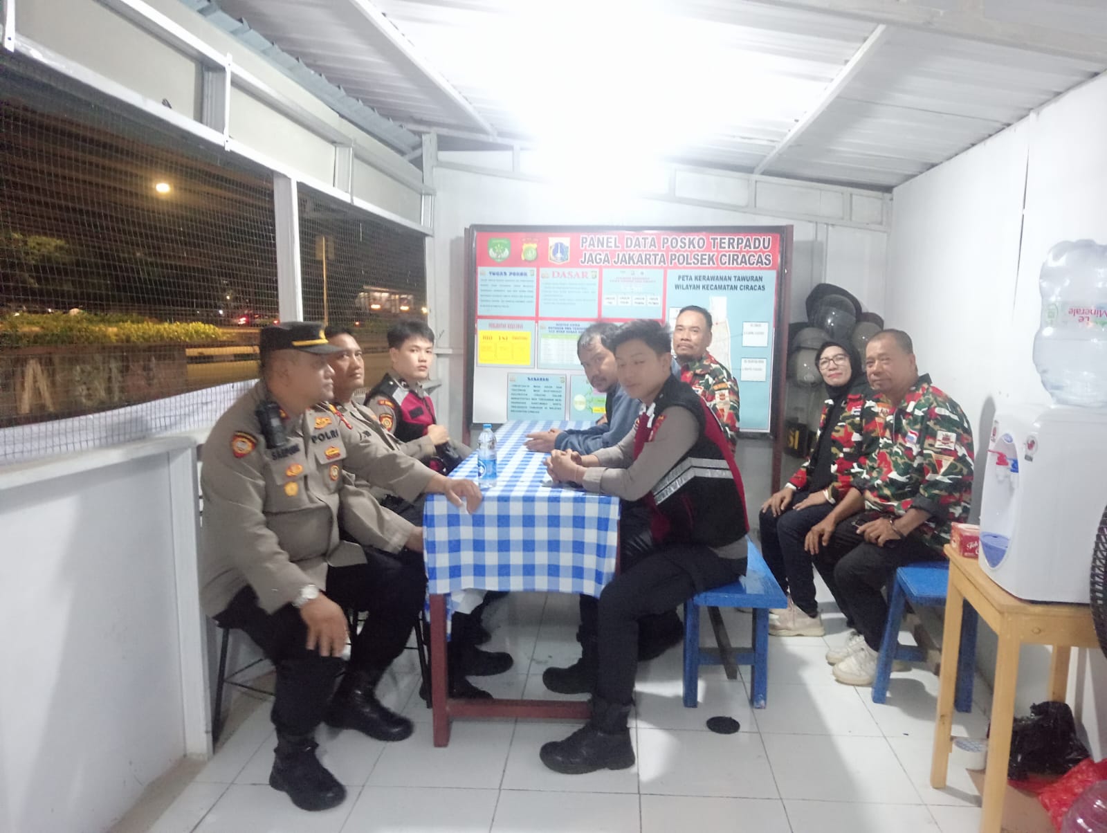 Jakarta -.Guna mengantisipasi potensi tawuran remaja di wilayah perbatasan, jajaran Polsek Ciracas menggelar apel pengamanan di Posko Terpadu Anti Tawuran bawah Flyover Pasar Rebo, Jalan Raya Bogor Km 24 RT 04/05, Kelurahan Susukan, Kecamatan Ciracas, Jakarta Timur, Rabu (18/2/2025) pukul 20.30 WIB.