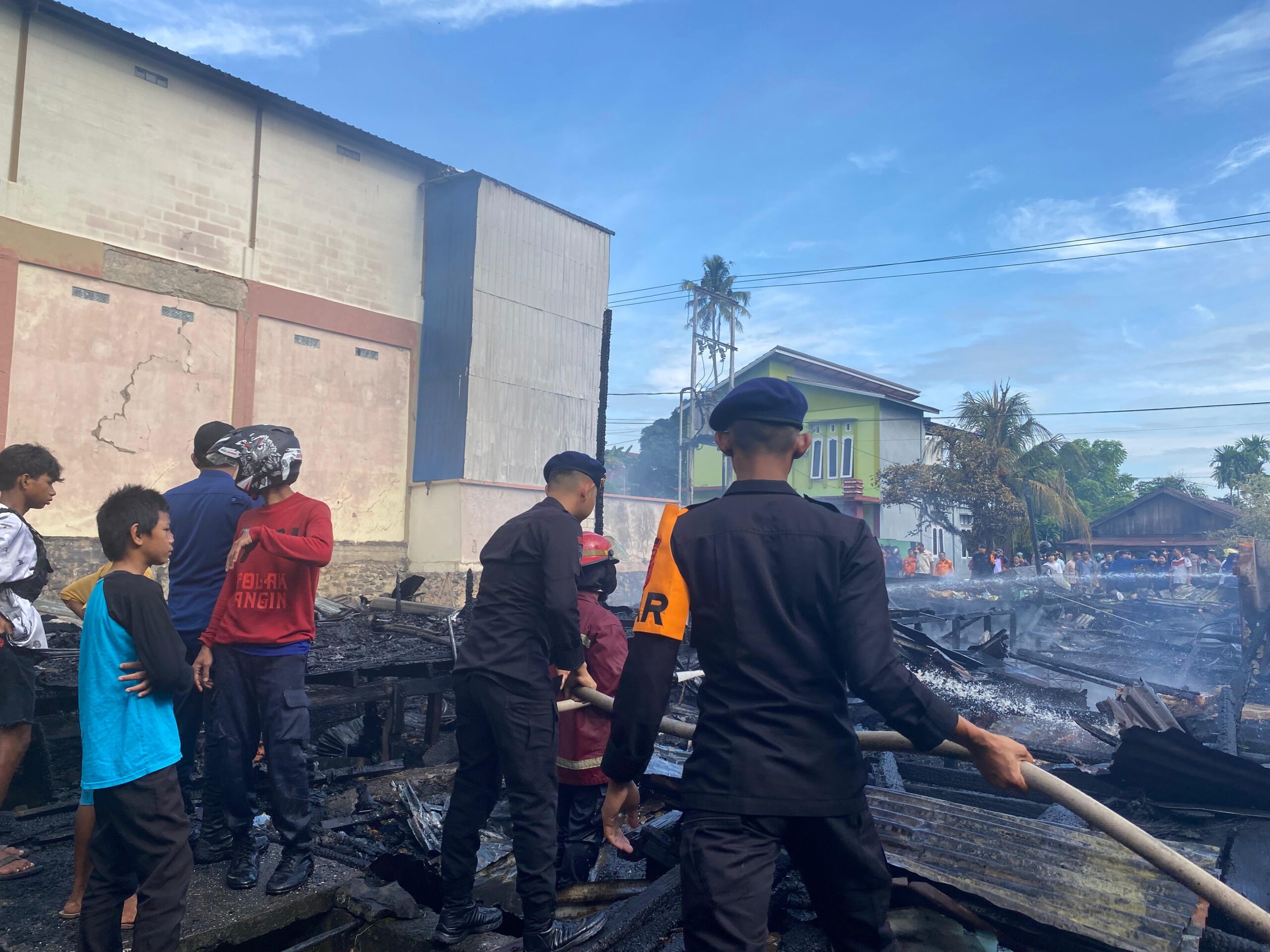 Nunukan – Personel SAR Batalyon B Pelopor Satbrimob Polda Kalimantan Utara bergerak cepat membantu proses pemadaman kebakaran dan evakuasi barang milik warga di Jalan Blok Tiga, Kecamatan Nunukan Barat, Kabupaten Nunukan, Senin (08/09/2025) pagi sekitar pukul 07.00 WITA.