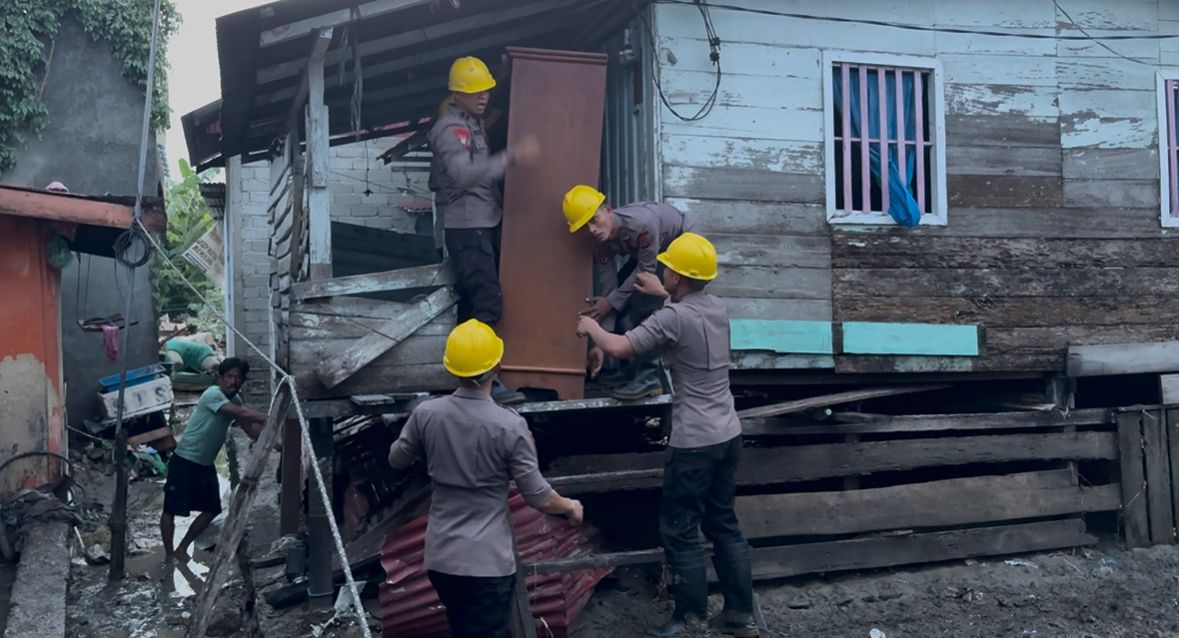 Di lokasi terdampak, personel Brimob berjibaku bersama masyarakat menyisir hunian yang dipenuhi sisa luapan air. Fokus utama petugas adalah melakukan aksi gotong royong membersihkan material sisa banjir yang masuk ke dalam hunian warga serta memindahkan perabotan ke tempat yang lebih aman guna meminimalisir kerusakan.