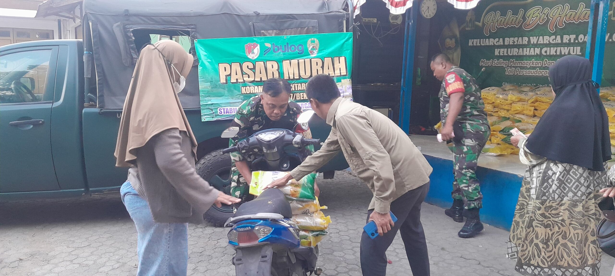 Dalam kegiatan ini, Babinsa Cikiwul, Serka Alim bersama Serda Samingun, membawa sebanyak 250 kantong beras SPHP Bulog kemasan 5 kilogram dengan harga terjangkau, yakni Rp57.500 per kantong. Kehadiran pasar murah ini langsung disambut antusias warga, mayoritas ibu rumah tangga, yang rela mengantre sejak pagi demi mendapatkan kebutuhan pokok dengan harga lebih ringan.