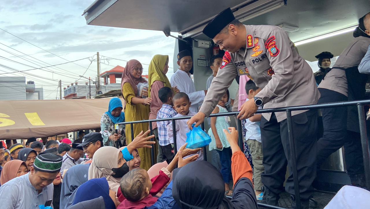 Satuan Brimob Polda Kepri, sebagai pelaksana kegiatan, menyiapkan 500 porsi makanan dan 6000 liter air bersih untuk dibagikan kepada masyarakat melalui Tim Dapur Lapangan Brimob.